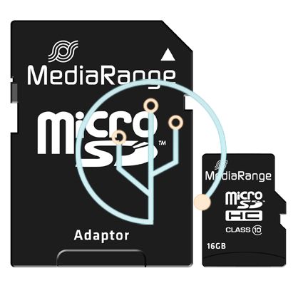 Pamäťová karta MediaRange Micro SDHC triedy 10 s adaptérom SD, 16 GB